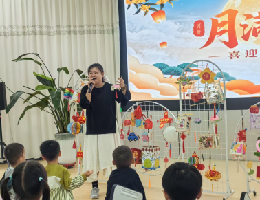 中班组以“半天沉浸式活动”为形式,聚焦中秋核心习俗:通过动画短片和趣味讲解,让幼儿了解“嫦娥奔月”的传说与“赏月、吃月饼”的习俗;设置“中秋灯谜会”,谜题围绕“月亮”“月饼”“玉兔”等节日元素,搭配图片提示,幼儿在竞猜中加深对中秋的认知,同时通过同伴协作猜谜,体验集体活动的快乐。
