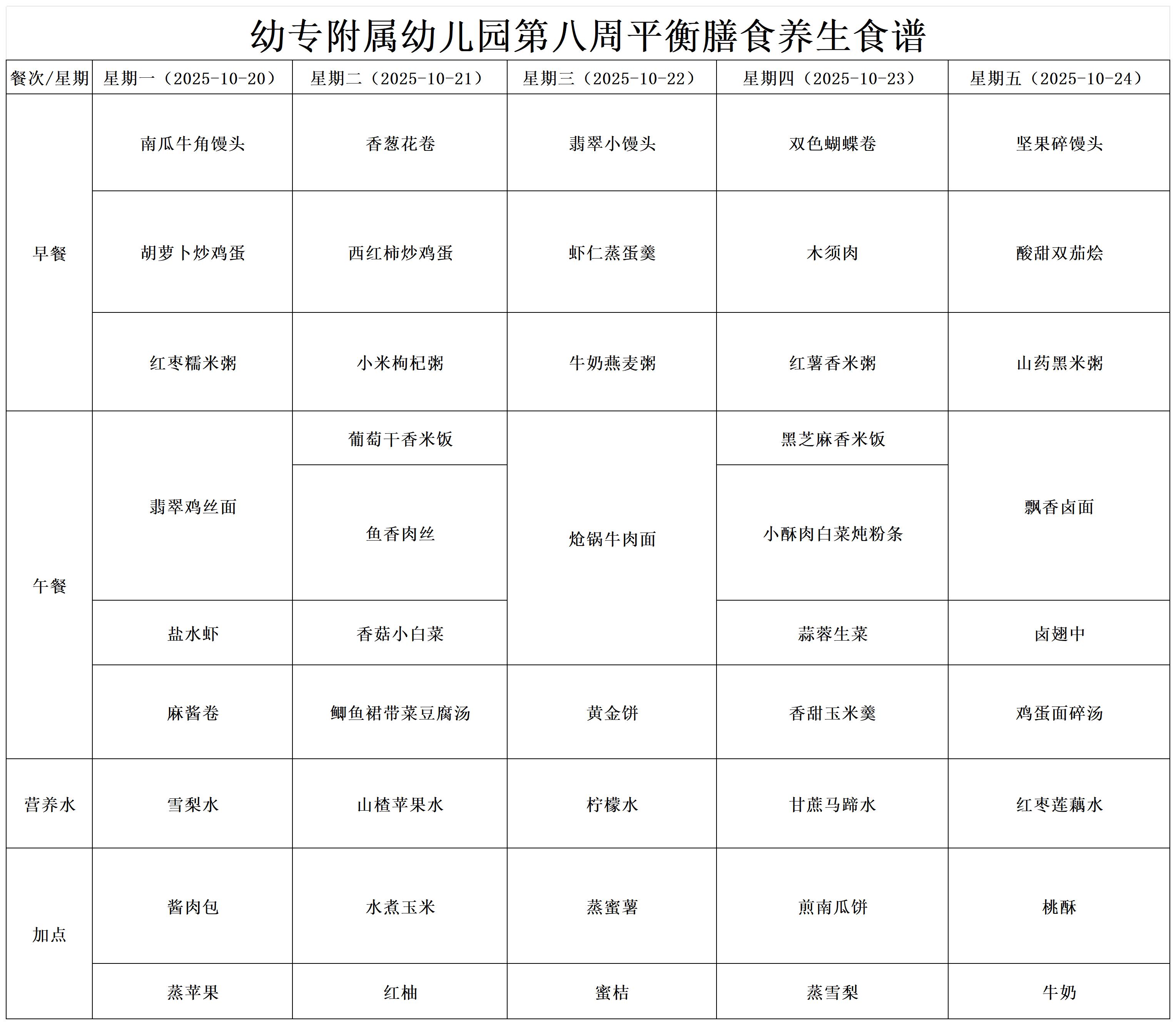 【幼儿食谱】驻马店幼专附属幼儿园2025年秋季第八周平衡膳食养生食谱