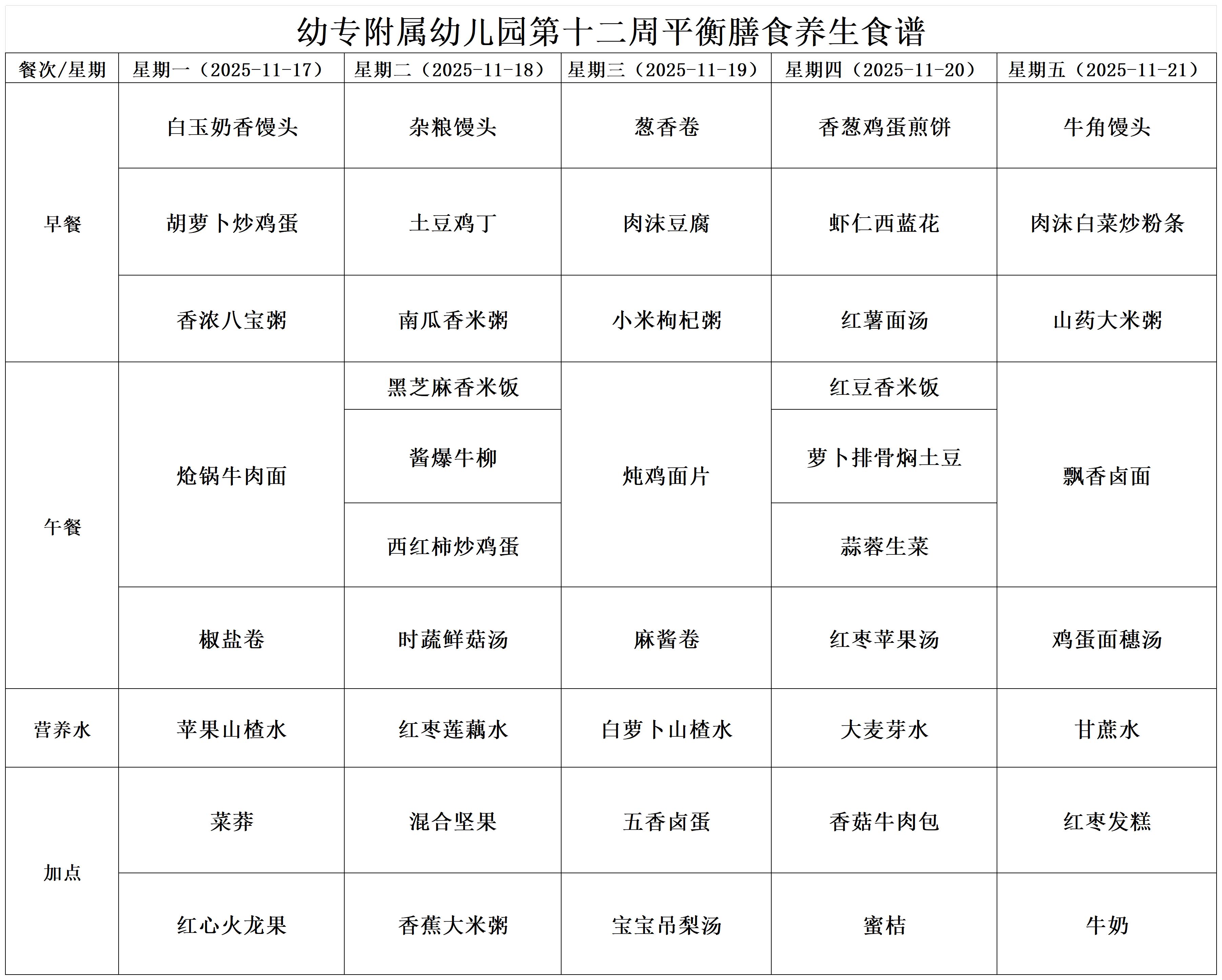 【幼儿食谱】驻马店幼专附属幼儿园2025年秋季第十二周平衡膳食养生食谱
