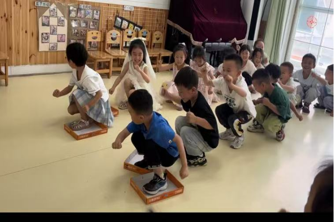椅子排排坐,船桨步步划。小朋友们通过赛龙舟活动,初步体验龙舟运动,感悟同舟共济、拼搏向前的龙舟精神。