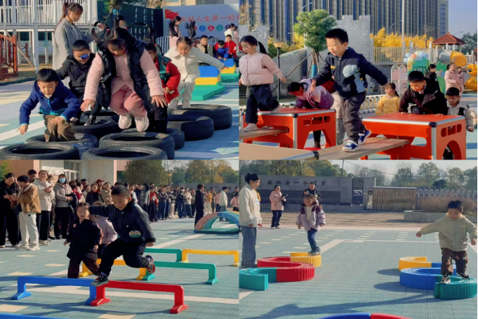 首先进行的“运动大循环”环节,孩子们在爬、平衡、攀跳、跳山羊、钻等一系列挑战中,尽情释放运动活力,展现了出色的身体素质和勇敢的意志品质。