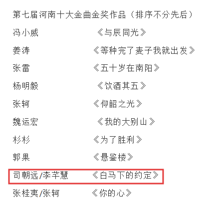 11月11日,第七届“中原之巅”河南省流行音乐十大金曲评选活动落下帷幕。我校司朝远老师创作并与弟子李芊慧共同演绎的歌曲《白马下的约定》,作为驻马店市代表作品参赛,凭借过硬的创作水准与精湛的演唱表现,成功斩获本届十大金曲奖。