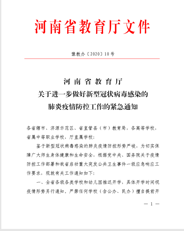 省教育厅关于进一步做好新型冠状病毒感染的肺炎疫情防控工作的紧急通知