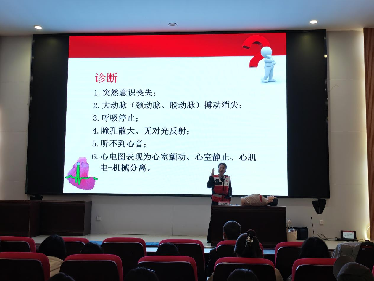 在热烈的掌声中,三位专家依次登台,为同学们带来了内容丰富、贴近实际的专题讲座。郭敬业老师以“艾滋病预防”为题,运用详实数据与生动案例,系统讲解了艾滋病的传播途径、流行现状与防控策略,引导同学们科学认知、消除歧视,树立健康负责的行为观念。吴春华老师聚焦“急救相关知识”,重点演示并讲解了心肺复苏等关键急救技能。驻马店市中心血站专家王爱辉则对“无偿献血知识”进行了普及,从血液生理知识入手,详细介绍了献血流程、注意事项及社会意义,号召同学们踊跃加入无偿献血行列,用可再生的血液传递爱心、挽救生命。