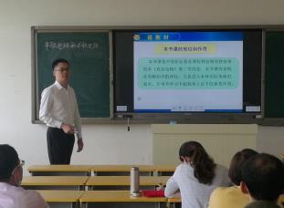 说课评比由教务处组织,于上午8点开始,下午5点圆满结束。比赛采用抽签定序的方式, 23名教师依次抽签,按抽签顺序说课;说课共分为两个环节:首先是10 分钟的说课,然后专家评委进行5分钟的答辩及点评。