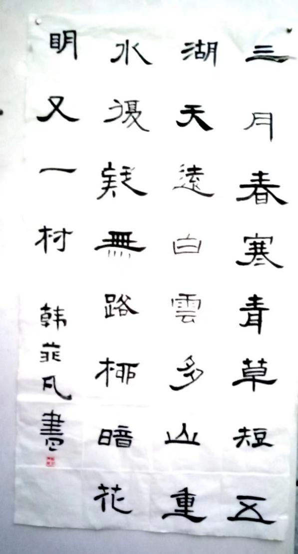 从书法上看,书写内容选取了古代优秀诗文。方正规矩的隶书作品,整洁工整,娟秀有力,体现了学生们功底深厚的书写能力。件件作品可谓苍劲有力。