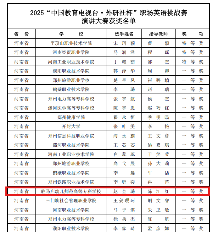 大赛以“Future Industry, Future Me”为主题,不仅紧扣时代发展的脉搏,更引导青年学子思考个人成长与产业变革的深刻联结。来自河南省各高等职业院校的参赛选手汇聚一堂,立足专业领域和行业前沿话题,展现出开阔的全球视野和敏锐的行业洞察力,以知行合一的担当践行青年责任。经过激烈的比赛竞争,陈江红、刘絮、葛娜和杨迎春老师指导学生取得了喜人的成绩。