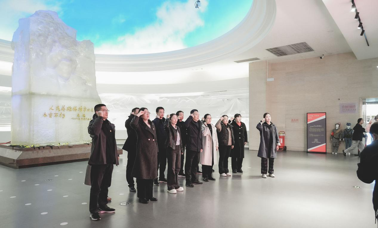 在庄严肃穆的纪念馆内,面对鲜红的党旗,科学与人文教学部党支部全体党员举行了重温入党誓词仪式。铿锵有力的誓言,表达了同志们继承先烈遗志、为党和人民的事业奋斗终身的坚定决心与坚强信念。