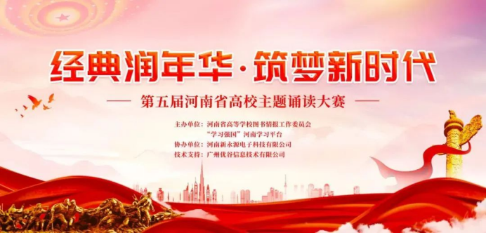 为深入贯彻落实习近平新时代中国特色社会主义思想,践行党的二十大精神,庆祝新中国成立75周年,纪念红军长征胜利90周年,在建设新时代现代化的征程中,我们当弘扬优秀传统文化,砥砺民族精神,为时代前行注入不竭动力。中华文明五千年,博大精深,泽被万方,弘扬经典、润泽年华,开展读书活动,建设书香社会,是我们图书馆人义不容辞的责任。在第29个“世界读书日”(4月23日)来临之际,河南省高等学校图书情报工作委员会决定举办第五届河南省高校“经典润年华·筑梦新时代”主题诵读大赛。