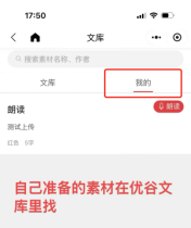 3. 报名信息填写后,即可进入作品录制及提交,参赛选手可围绕“赓续华夏文脉·唱响时代新篇”主题,选择合适的素材进行诵读(可参考“学习强国”、“优谷文库”等资源库),搭配配乐进行创作(录制前在右下角“更换”选择自己喜欢的配乐);