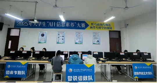 2025年10月26日上午,2025年大学生“AI+信息素养”大赛(高职高专赛道)河南省赛驻马店幼儿师范高等专科学校分赛区比赛在实训楼A楼机房成功举办。本次比赛响应国家人工智能发展战略,以“AI赋能信息素养,培育创新实践能力”为核心目标,旨在选拔省赛决赛选手,全省有131支队伍参赛,我校有3支队伍、9名同学参与角逐,最终2支队伍以17、44名优异表现成功晋级省赛决赛。