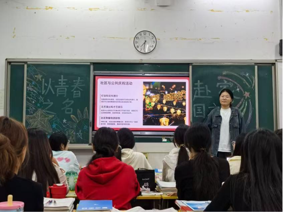 五年制大专部通过观看爱国纪录片、解读时代楷模事迹、开展“家国情怀”主题宣讲等形式,引导学生深刻理解爱国精神的历史传承与当代价值。活动中,团支书通过PPT演讲,回顾祖国从站起来、富起来到强起来的伟大历程,讲述先辈奋斗故事与新时代青年的担当,帮助同学们认识到家国情怀并非遥不可及,而是体现在日常的学习、工作和奉献中。活动还发起了“爱国从身边做起”倡议,号召学生以踏实学习、志愿服务、传播正能量等实际行动践行爱国情怀。