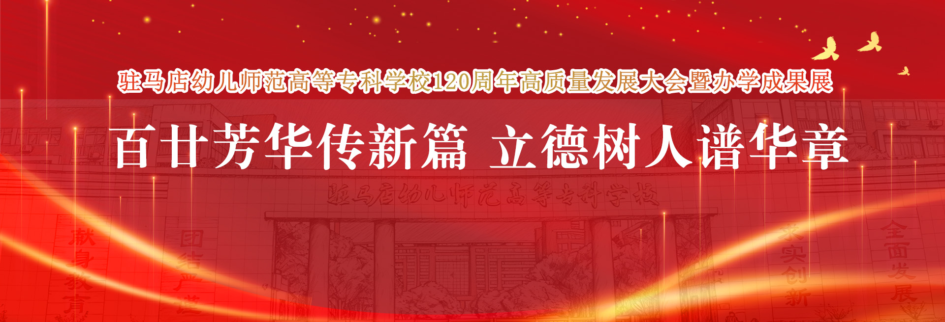 天中毓秀,汝水汤汤。公元2026年,时维金秋,驻马店幼儿师范高等专科学校将迎来建校120周年华诞。值此盛典将至、华章新启之际,学校谨以赤诚之心、感恩之情,向海内外全体校友、各级领导、各界贤达、全体师生员工及离退休老同志,致以最诚挚的问候和最崇高的敬意!溯其源流,根植厚土。本校肇始于清光绪三十二年(1906年)“汝阳师范传习所”,坐落于天中故地、蔡州旧邑。此处天地灵秀,人文渊薮:昔有韩非立言、李斯辅政,近...