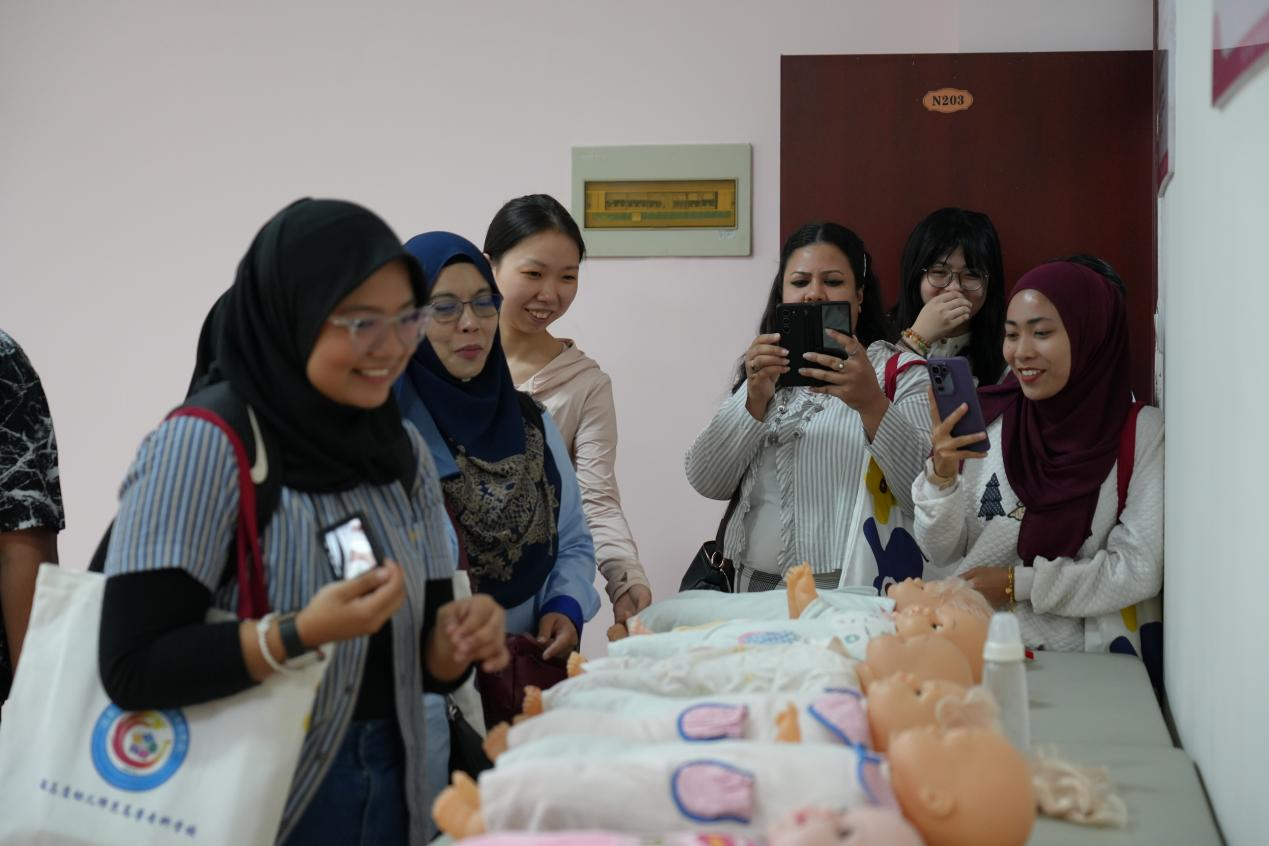 马来亚师生一行参观了0-6岁托幼一体化虚拟仿真实训基地、智能制造、电商直播等实训室,图书馆及艺术学院儿童画展,实地感受学校在实践教学和艺术教育方面的成果。