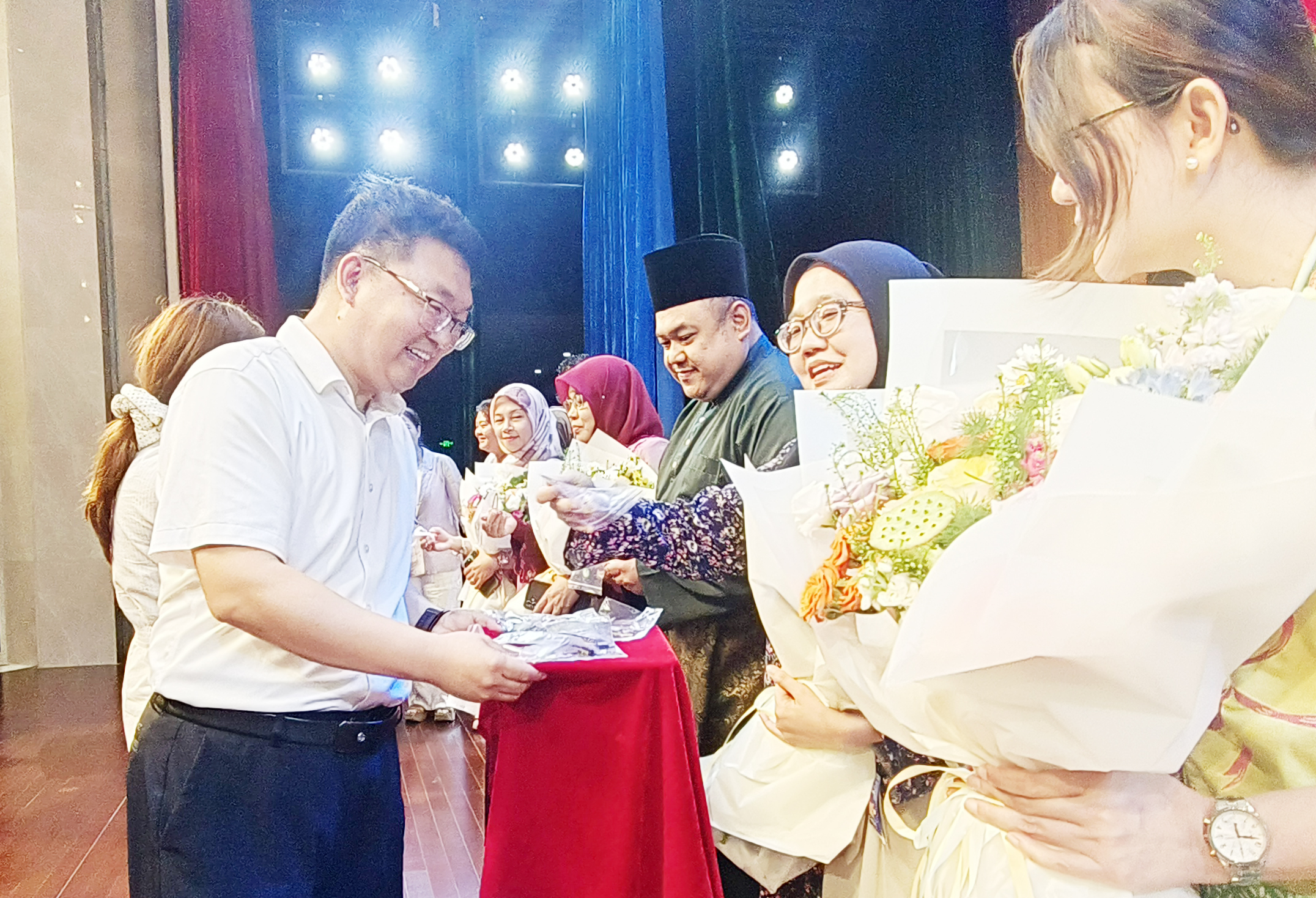 结业汇报演出中,舞蹈《薪火光语》《一个马来西亚》《淡妆浓抹总相宜》、歌曲《Gemilang》、武术表演《功夫少年》、古筝合奏《黄河》……马来西亚具有民族特色的欢快舞蹈,悠扬的二胡与清脆的古筝交织,一快一慢、一动一静,两种文化在舞台上碰撞出别样火花。这场充满异域风情与中华韵味的文艺盛宴,不仅为此次研学活动画上圆满句号,更让两校师生在艺术的共鸣中深化了情谊。