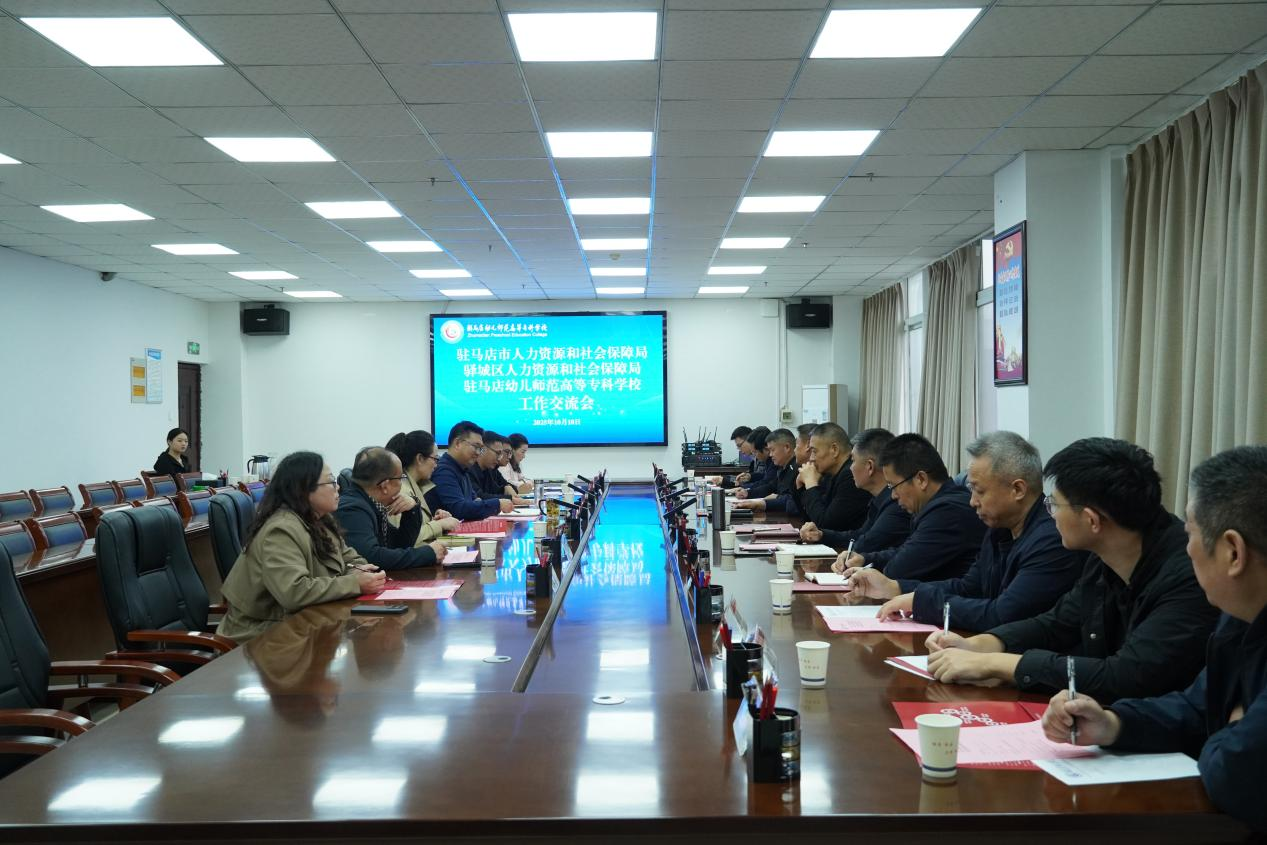 10月10日下午,市人社局二级调研员李新、驿城区人社局局长段德政等一行十余人莅临我校交流座谈。我校校长李柯、副校长周涛及相关职能部门、学院负责人参会。