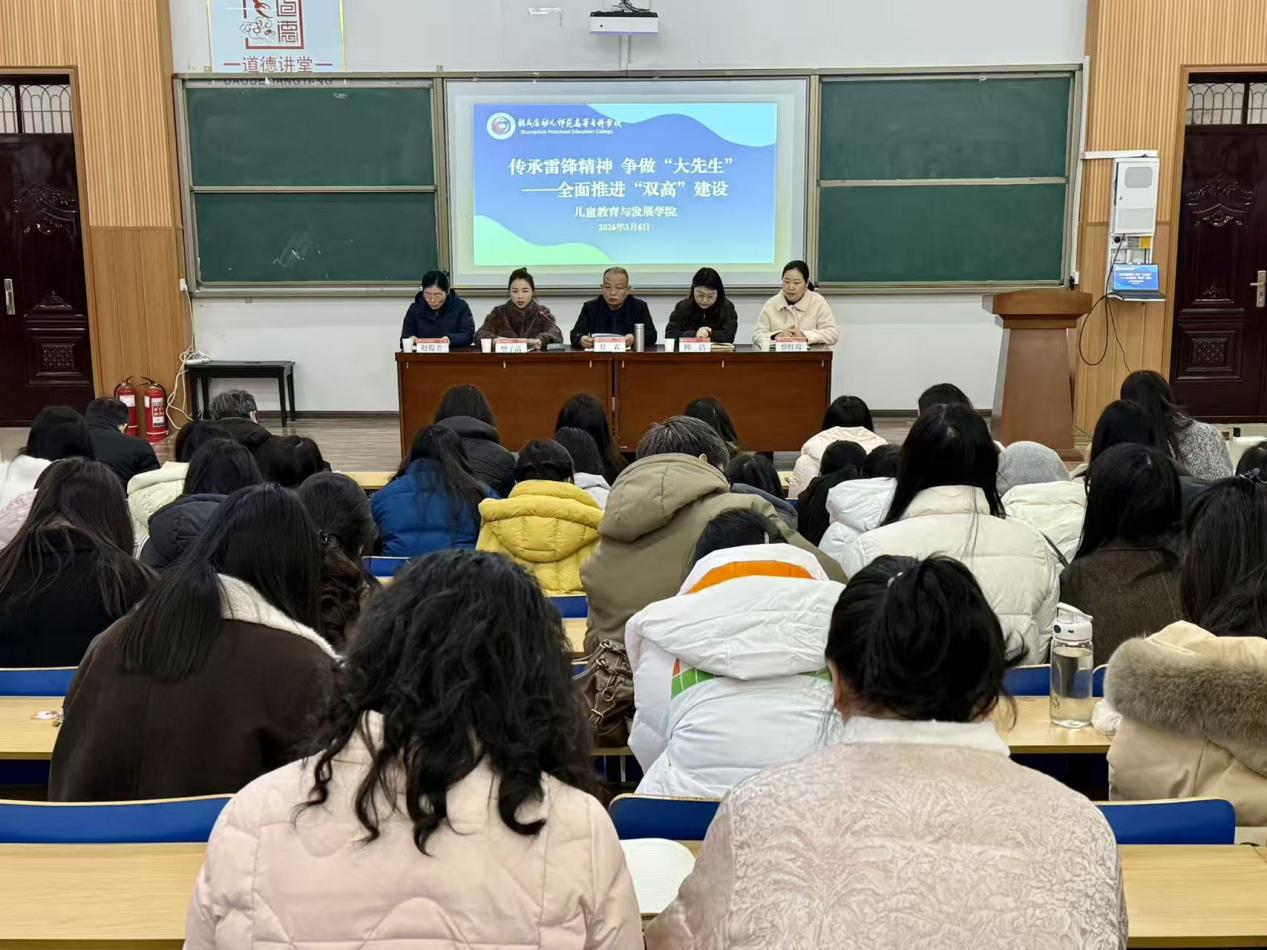 会议伊始,学院副院长赵俊美宣读《河南省教育厅关于公布河南省第二期高水平高等职业学校和高水平专业建设工程(2025—2029年)立项建设单位的通知》,学院婴幼儿托育服务与管理专业群入选省“双高”工程立项建设专业群。接着,学院院长夏霖阐释了“双高”工程建设的关键是要提升人才培养质量和社会服务能力,指出“双高”工程建设需要学院广大教职工传承雷锋精神,像雷锋那样有崇高的理想信念、高尚的道德情操、干一行爱一行专一行精一行的敬业精神和乐于奉献的仁爱之心。鼓励全院教职工争做新时代的“大先生”,主动投身服务区域经济社会发展的行动中去,努力提升人才培养质量,提升服务社会的能力和对社会的贡献度,用自己的真才实学奉献社会。
