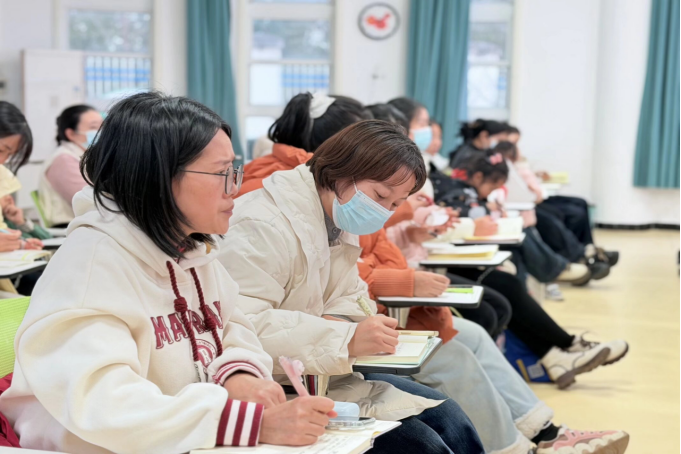 整个学习现场气氛专注而严肃。全体教职工全程认真聆听讲座,并做好详细记录。从大家专注的神情和细致的笔记中,可以感受到对领会党中央精神的高度重视,以及将政策理论与自身工作相结合的积极思考。整个过程秩序井然,体现出教职工严谨的学习态度和求知若渴的精神风貌。通过本次集中学习,大家对国家发展大势与学前教育使命的关系有了更宏观的把握,对“幼有优育”新征程的方向有了更清晰的认识,为进一步统一思想、凝聚团队合力奠定了坚实的基础。