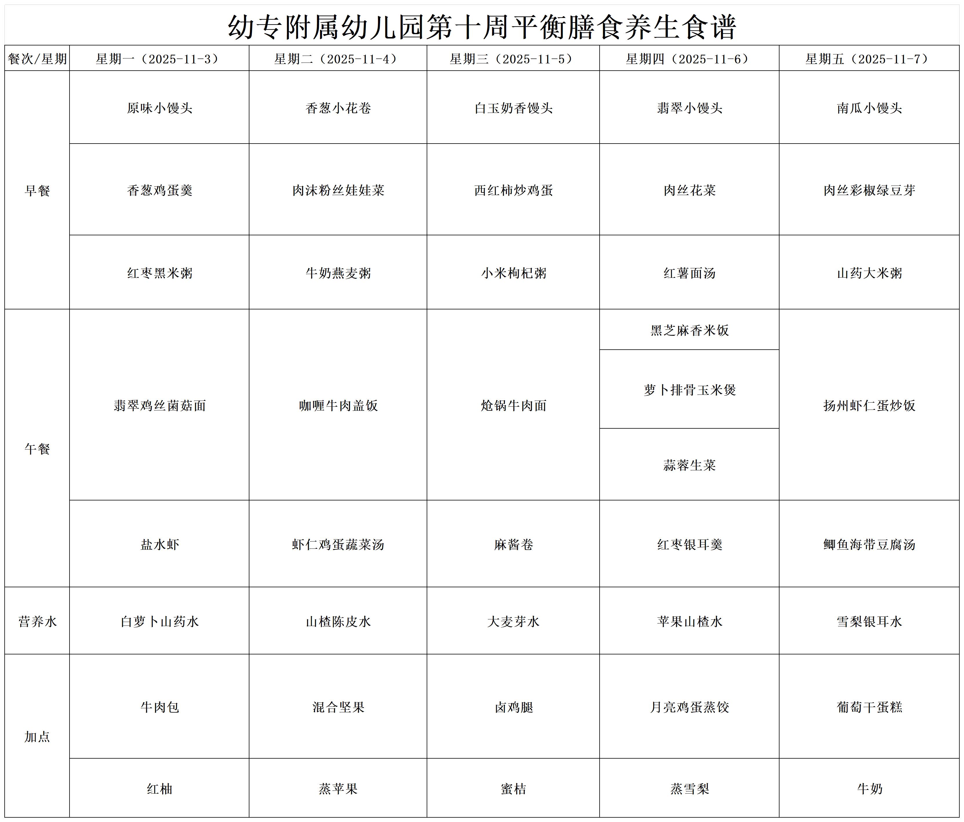 【幼儿食谱】驻马店幼专附属幼儿园2025年秋季第十周平衡膳食养生食谱