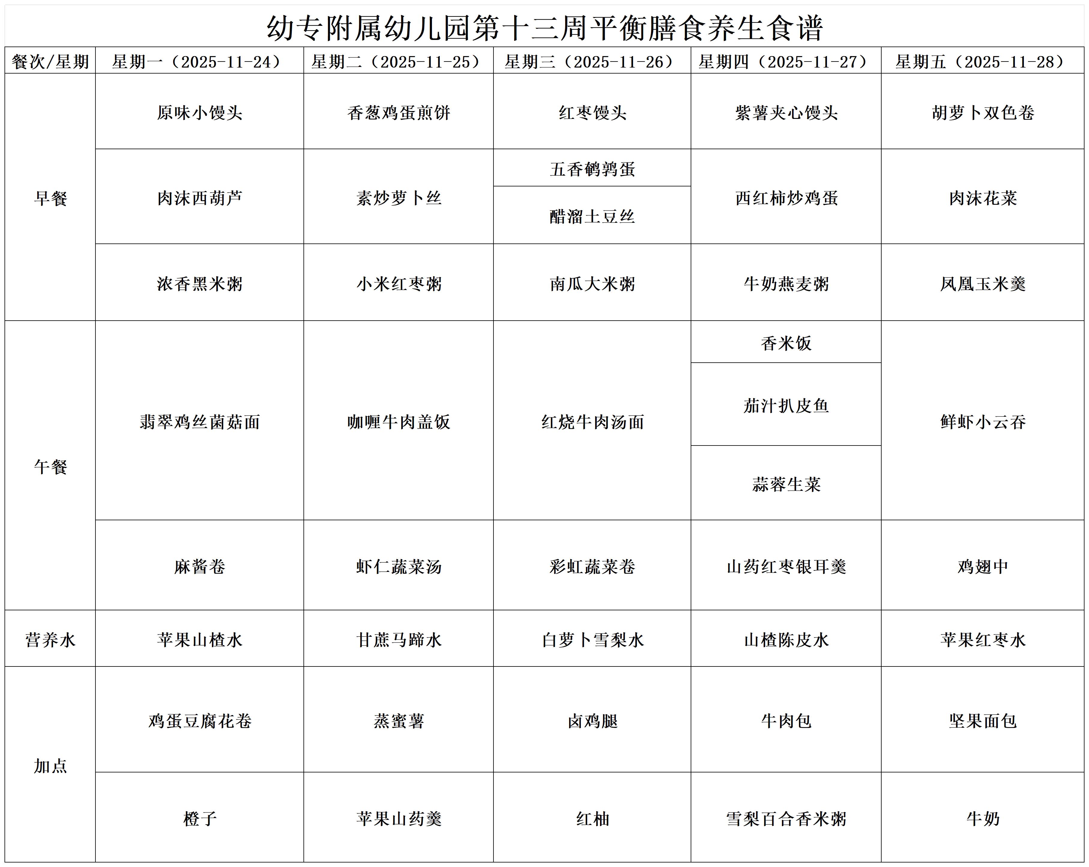 【幼儿食谱】驻马店幼专附属幼儿园2025年秋季第十三周平衡膳食养生食谱
