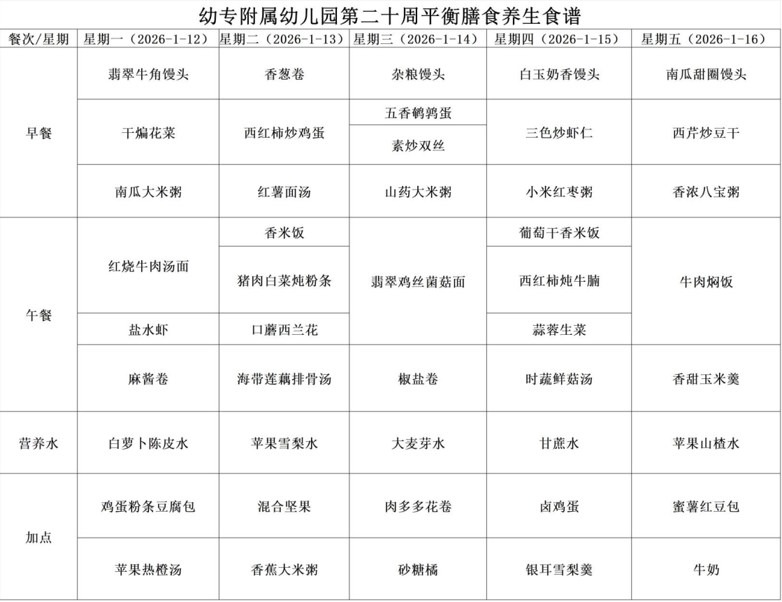 【幼儿食谱】驻马店幼专附属幼儿园2025年秋季第二十周平衡膳食养生食谱