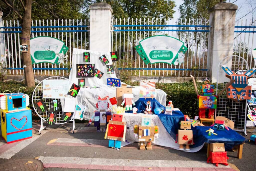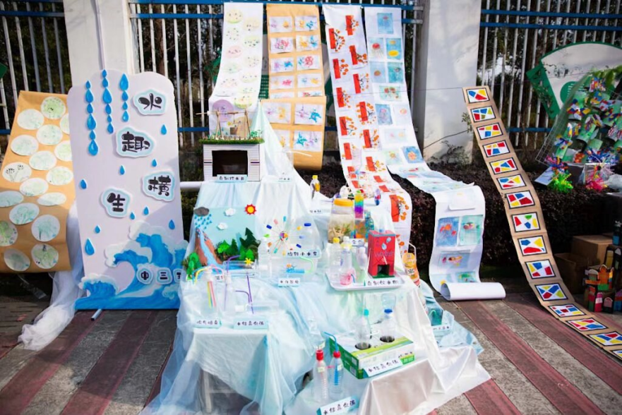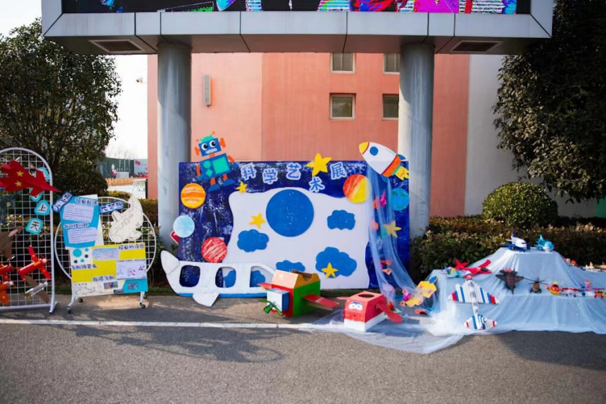A区·科创成果展:宛如一个微型科技博览会,展示着孩子们在“百变机器人”、“中国航天梦”等主题下的创意作品。一件件充满奇思妙想的创作,配以图文并茂的课程故事,清晰勾勒出孩子们探索科技的成长足迹。