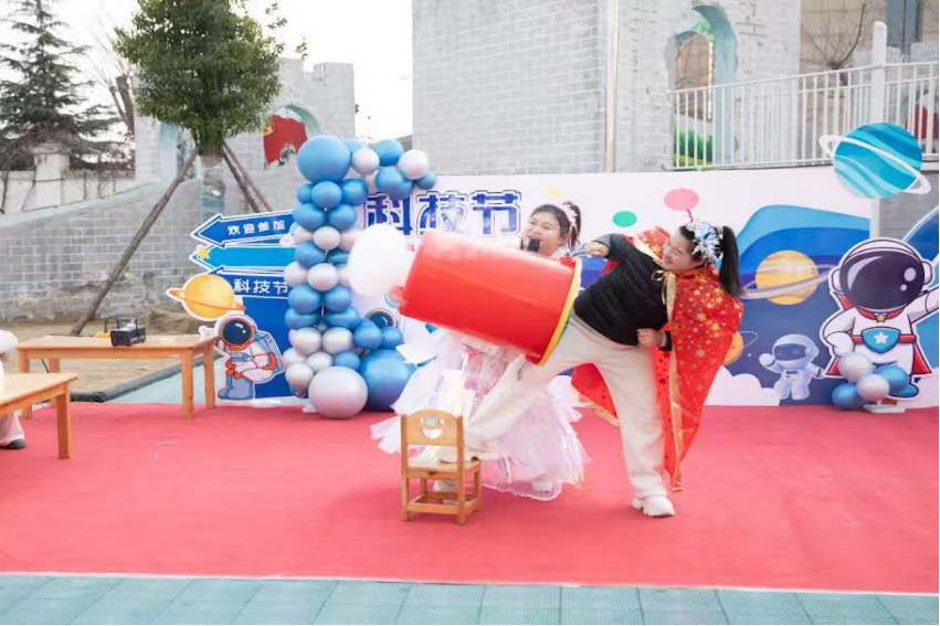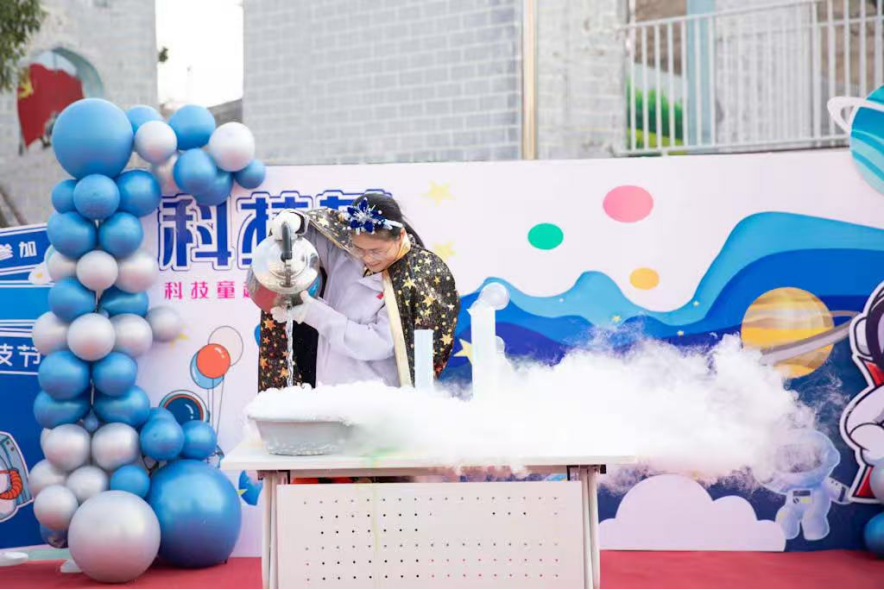 闭幕式在充满未来感的科技艺术秀中拉开帷幕。当梦幻的泡泡秀、神秘的干冰实验、震撼的空气炮、好玩的马德堡半球等科学现象以艺术化的形式呈现时,现场惊叹声与欢呼声此起彼伏。幼专附属幼儿园党支部书记、园长丁喜玲在致辞中表示:“‘科技’与‘童趣’结合,‘艺术’与‘创想’共生,是我们本次科技文化艺术月活动的初心,在孩子心中点燃好奇的火炬,培养他们面向未来的科学素养与艺术表达力,这正是我们基础教育工作者对时代命题的回应。”