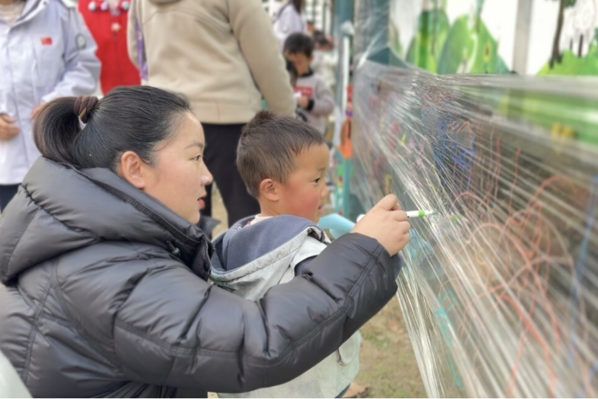 D区·创想制作区:聚焦“协同育人”与“未来创想”。亲子共同挑战“跳舞的盐”、“气球火箭”“摩擦力体验”等科学小实验,在动手操作中感知科学原理;在“未来智慧幼儿园”画卷前,孩子们用画笔、纸杯和纸牌,共同描绘出对未来幼儿园的无限想象。