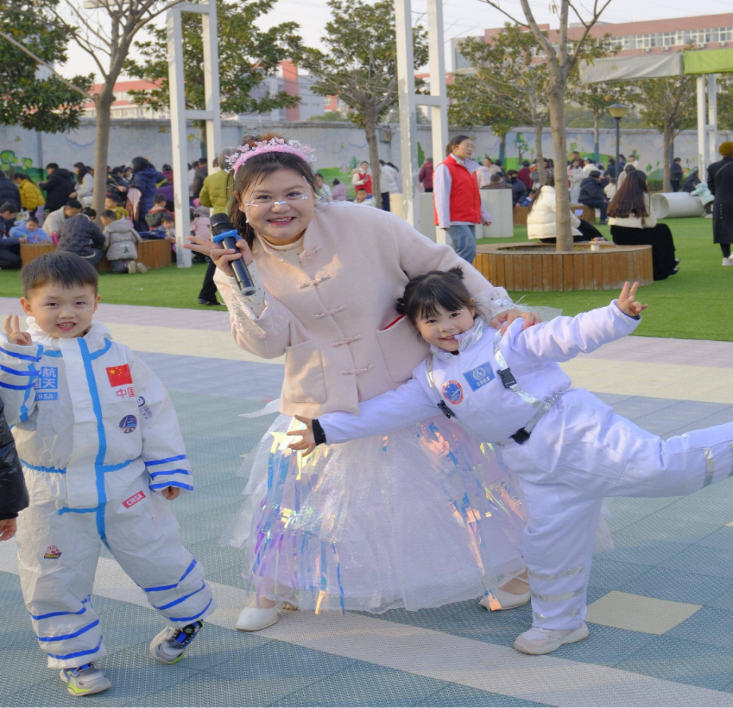 活动特邀驻马店市科技局四级调研员周建国,关王庙乡荒坡陆村委书记陆楠,驻马店幼专科学与人文教学部书记李晓,驻马店幼专体育学院院长张杰,五年制大专部张彧主任,驻马店市残联博爱幼儿园师幼代表,驻马店市军分区幼儿园,确山县直幼儿园,丁喜玲中原名师工作室部分单位代表,以及2026年意向入园的新生家庭代表莅临现场,与全园师生及家长共同见证这一科技与艺术交融的盛宴。嘉宾们的到来,充分体现了家园社协同育人机制的深化与拓展,为活动增添了隆重而热烈的氛围。