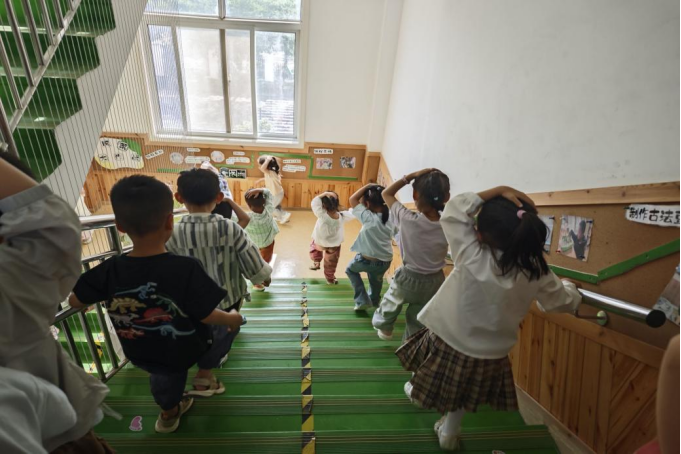 到达安全地带后,各班组教师清点人数,并向总指挥报告。全体师幼最终用时3分钟全部转移至到户外安全场地,没有发生踩踏、拥挤情况。