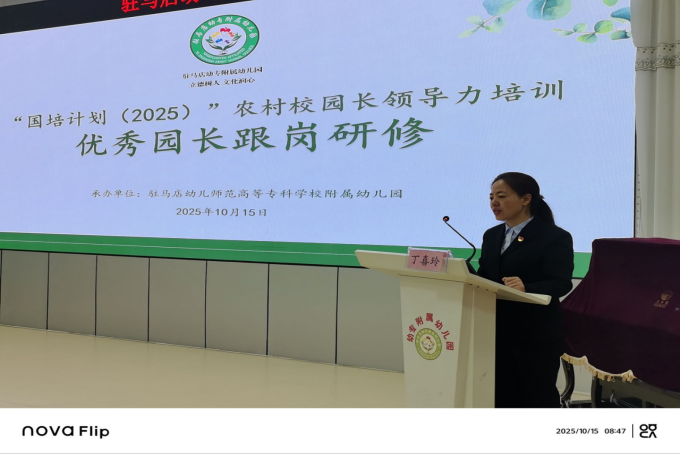 为深入贯彻教育部“国培计划”文件精神,助力新时代学前教育改革发展,提升农村校园长领导力,驻马店幼专附属幼儿园于2025年10月15日至16日、20日至21日成功承办“国培计划(2025)”农村校园长领导力培训优秀园长跟岗研修活动。本次活动以“实践为先、精准赋能、成果转化”为核心理念,通过沉浸式实践研修,为来自南阳、开封、商丘等地的优秀园长搭建了经验共享与能力提升的平台。