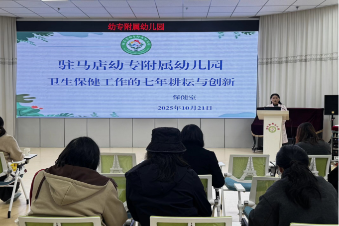 卫生保健专题分享:保健室叶宁、赵冬雪老师以《卫生保健工作七年耕耘与创新》为主题,从晨午检制度、传染病预防到食品安全、营养膳食,系统讲解规范化操作要点,并组织参培园长现场设计“幼儿一日营养食谱”,强化实操能力。