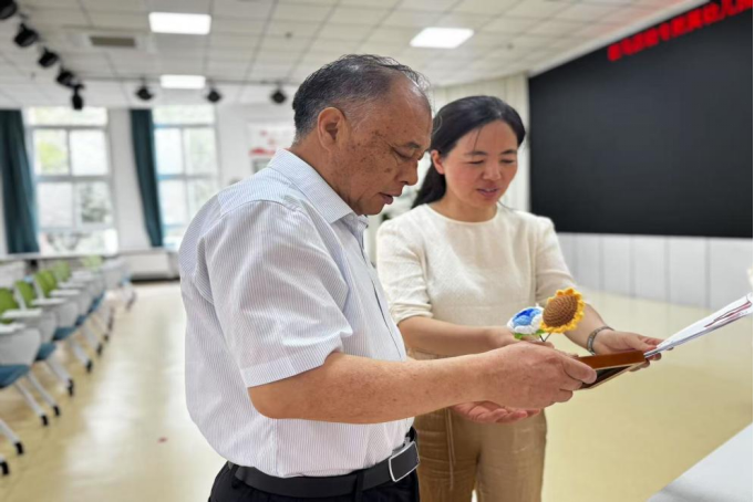 在多功能活动室,张主席为孩子们送上了节日礼物,鼓励特殊儿童勇敢自信、快乐成长,并向辛勤工作在特殊儿童教育和关爱保护一线的教师表示衷心感谢。孩子们则以童趣的画作和手工作品敬赠给张主席,用稚嫩的笔触表达对关怀的感谢。