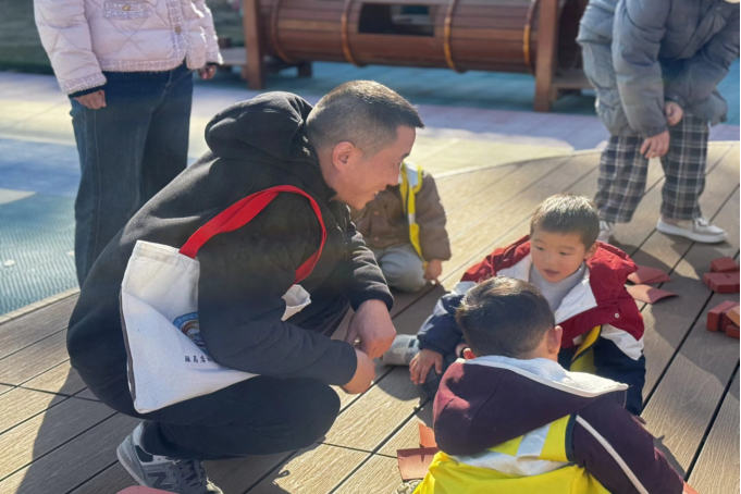 微论坛理念先行,跟岗观摩则让理念落地生根。参训教师们深入各班自主游戏现场。我园精心创设的、充满探索趣味的游戏环境中,孩子们是绝对的主人:建构区的孩子正在合作搭建复杂的“未来城市”,螺母积木的“工程师”搭建着各类新型交通工具,骑行区的“小司机”在小交警的指挥下有条不紊的穿梭,爱心树林的孩子则利用自然材料进行天马行空的创作……老师们时而驻足细观,时而低声交流,用镜头和笔墨记录下我园在低结构材料投放、游戏空间规划及教师支持策略等方面的具体做法。这种“浸润式”的体验,让抽象的“游戏理念”转化为可感、可知、可学的生动实践。