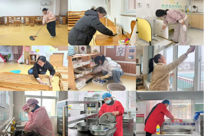 为给宝贝们打造安全、温馨、有爱的校园环境,以最佳状态迎接宝贝们归来,幼儿园全体教职工已提前到岗,全面开展开学前各项准备工作: