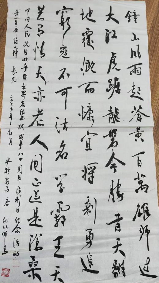 在纪念中国人民抗日战争暨世界反法西斯战争胜利80周年与中华人民共和国成立76周年的国庆中秋佳节叠加的特殊时刻,为深入学习贯彻习近平新时代中国特色社会主义思想,弘扬爱国主义精神,丰富退休教职工精神文化生活,我校党委组织部退休职工服务科响应 “铭记历史・共庆华诞”号召,在全体退休教职工中开展了书法、绘画、摄影、征文红色作品征集活动。老干部们积极响应、踊跃参加,以笔墨寄情、以镜头定格、以文字抒怀,既回顾了抗日战争中先烈们浴血奋战的峥嵘岁月,也歌颂了新时代祖国建设的辉煌成就和国泰民安的和谐画面,生动展现了老干部们 “离岗不离党、退休不褪色”的精神风貌。优秀作品展示如下: