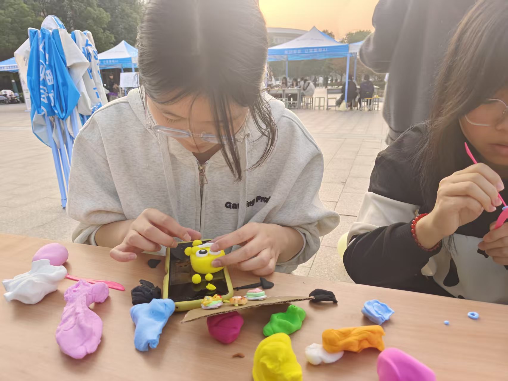 活动以“用粘土塑形,为心灵减压”为核心,面向全院学生开放,吸引大量同学参与。活动现场提供超轻粘土、工具包等材料,鼓励学生随心所欲塑造“内心世界”的具象化形态(如代表温暖的太阳、象征烦恼的荆棘、寓意希望的小船等)创作完成后,设置自愿分享环节,让学生讲述作品背后的故事,在交流中获得理解与共鸣。