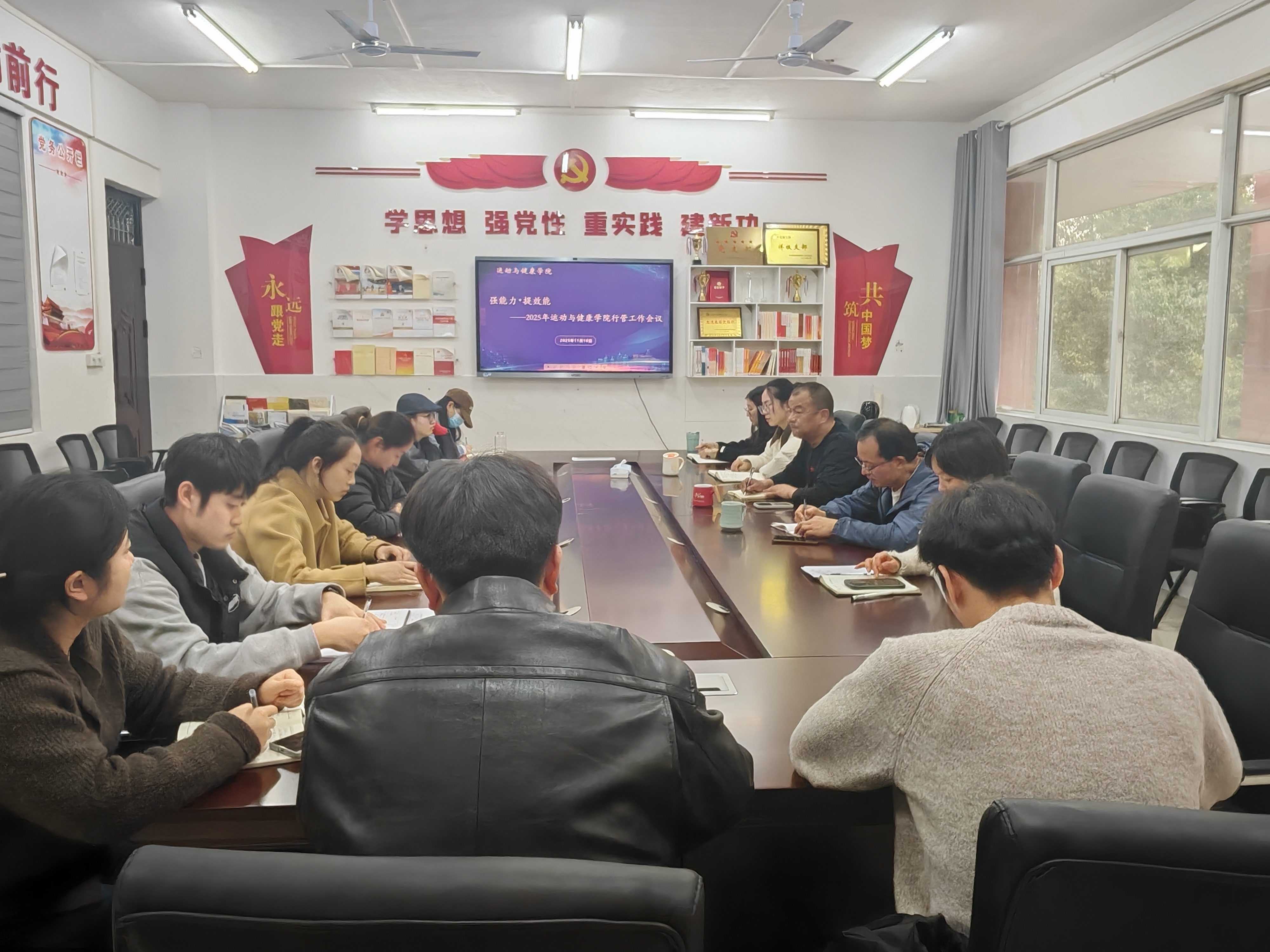 为提升服务管理能力,推进学院管理工作高质量发展,11月10日,运动与健康学院于会议室召开行政管理人员工作会议。学院党总支书记白华威、院长张杰、副书记楚荷霞、副院长陈洁琼、副院长徐楠楠出席会议,学院办公室、教学科研科、学生工作科全体行管人员参会。