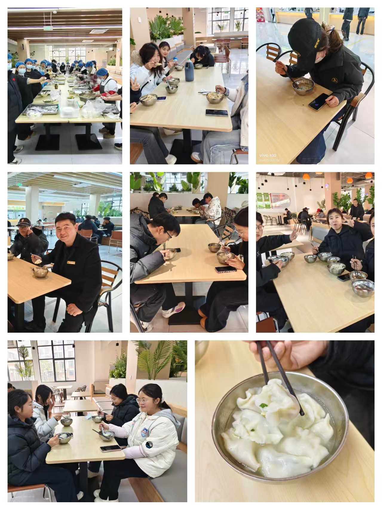 中午时分,香气四溢的饺子新鲜出锅。校区物业员工、在校教师等陆续来到餐厅,与同学们一同品尝这份冬日里的暖心成果。大家围坐共话,分享喜悦,热气腾腾的饺子不仅驱散了冬日的寒意,更传递出校区大家庭的关怀与温暖,营造了和谐温馨、情意融融的节日氛围。