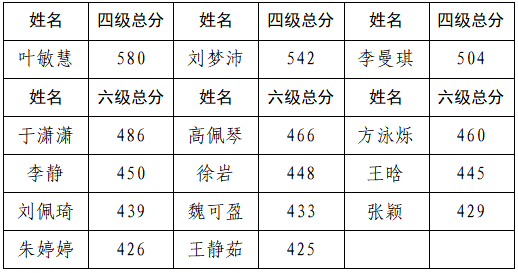 近日,2025年下半年大学英语四六级考试成绩正式发布,本次考试中,我校共通过89人,其中英语四级78人,英语六级11人,叶敏慧、刘梦沛、李曼琪三位学生在四级考试中获得了500分以上的优异成绩,高佩琴等11位学生顺利通过六级,这份成绩充分体现了我校学生勤奋好学的精神风貌。