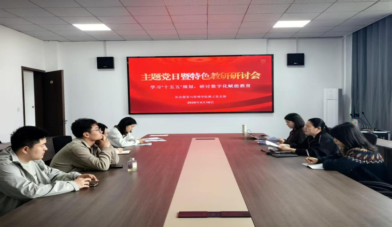 为深入学习贯彻国家“十五五”规划精神,推动教育数字化转型,切实提升教学质量与育人效能,4月16,社会服务与管理学院在2502会议室开展主题党日暨特色教研联合活动。智慧管理教研室、社会服务教研室全体教师及学院教工党支部全体党员参加活动,学院副院长、教工党支部书记桂爱华主持。