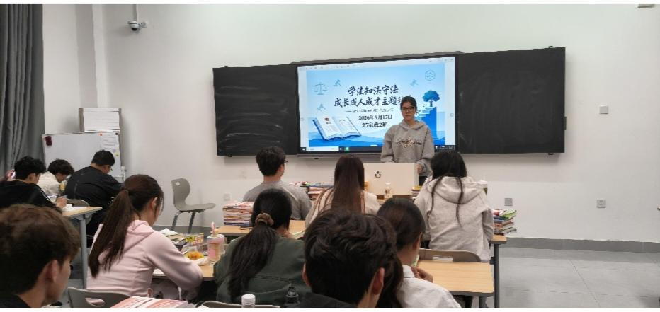 班会中,各班班委围绕大学生日常学习生活,结合《民法典》《治安管理处罚法》等相关法律法规,重点讲解网络诈骗、校园欺凌、个人信息保护、学术规范等高频法律问题,通过剖析真实典型案例,深入浅出解读法律条文,让同学们清晰认识到法律与生活息息相关,明白违法违规行为的严重危害,深刻理解尊法守法是青年立足社会、实现自我发展的基本准则。同时,各班通过互动交流、观看法治教育短片、法律知识问答等形式,调动同学们的参与积极性。大家结合自身感悟踊跃发言,探讨校园生活中的法律风险,分享学法心得,在交流中加深对法律知识的理解,进一步明晰自身的权利与义务,树立起基本的法治思维。