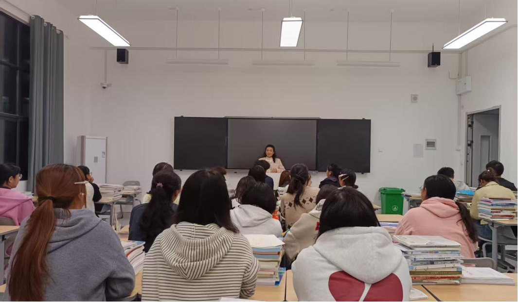 与此同时,为精准掌握一线教学动态,副院长徐洁深入班级一线,与同学们展开交流。交流气氛轻松热烈,徐洁细致询问大家的学习进展、学业压力及未来规划,并围绕实习实践、就业前景等话题与同学们深入探讨。她鼓励同学们要夯实专业基础,拓展综合素质,同时也欢迎大家积极主动为学院发展建言献策。对于同学们提出的具体诉求和建议,徐洁一一予以回应,并表示学院将不断优化教学管理与学生服务体系,全力支持学生成长成才。