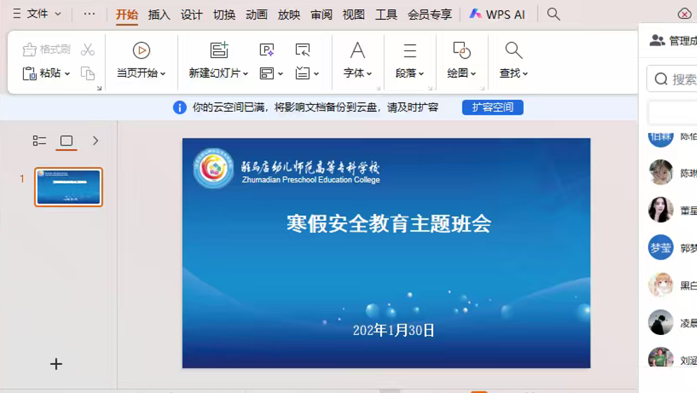 此次线上安全主题班会针对性强、内容实用,有效强化了同学们的假期安全意识和自我防护能力,为全院学子平安度过寒假筑牢了思想根基。下一步,学院将持续通过线上提醒、家校联动等方式,做好假期学生安全工作,确保全体学子度过一个平安、文明、充实的寒假,以饱满状态迎接新学期的到来。