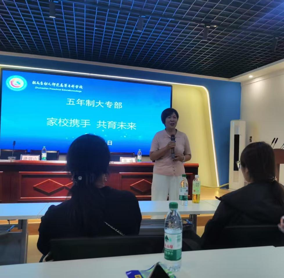 首先,逄锦山致欢迎辞,介绍五年制大专部的历史沿革与发展。随后,学生科科长武淑宁分别从作息、请假、思想引领、社团四个方面介绍学生日常教育管理相关情况,现场建立家长群,说明家长群的用途,实现家校对接。之后,教务科科长康筱君讲解专业设置与职业发展,梳理学前教育、音乐表演、计算机应用专业的培养目标、课程设置及升学就业前景。会上,四位新生辅导员与家长进行了见面,并介绍了相关的情况。最后,张彧作了讲话,她从自己所从事的学前教育专业说起,介绍了学生的就业和升学前景,强调了家校合作的重要性。