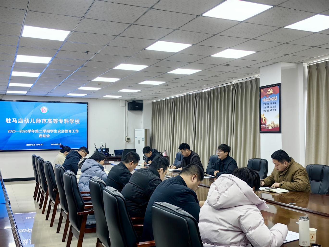 会上,郭昊部长再次传达了学校校园安全工作会议精神,结合春季开学季学生安全工作特点,明确了返校前后安全管理的总体要求,对学生返校途中安全、宿舍隐患排查、心理异常学生复学保障等重点难点工作进行梳理,强调要以“全覆盖、无死角、零容忍”的态度落实各项安全举措,确保学生平安返校、校园平稳运行。