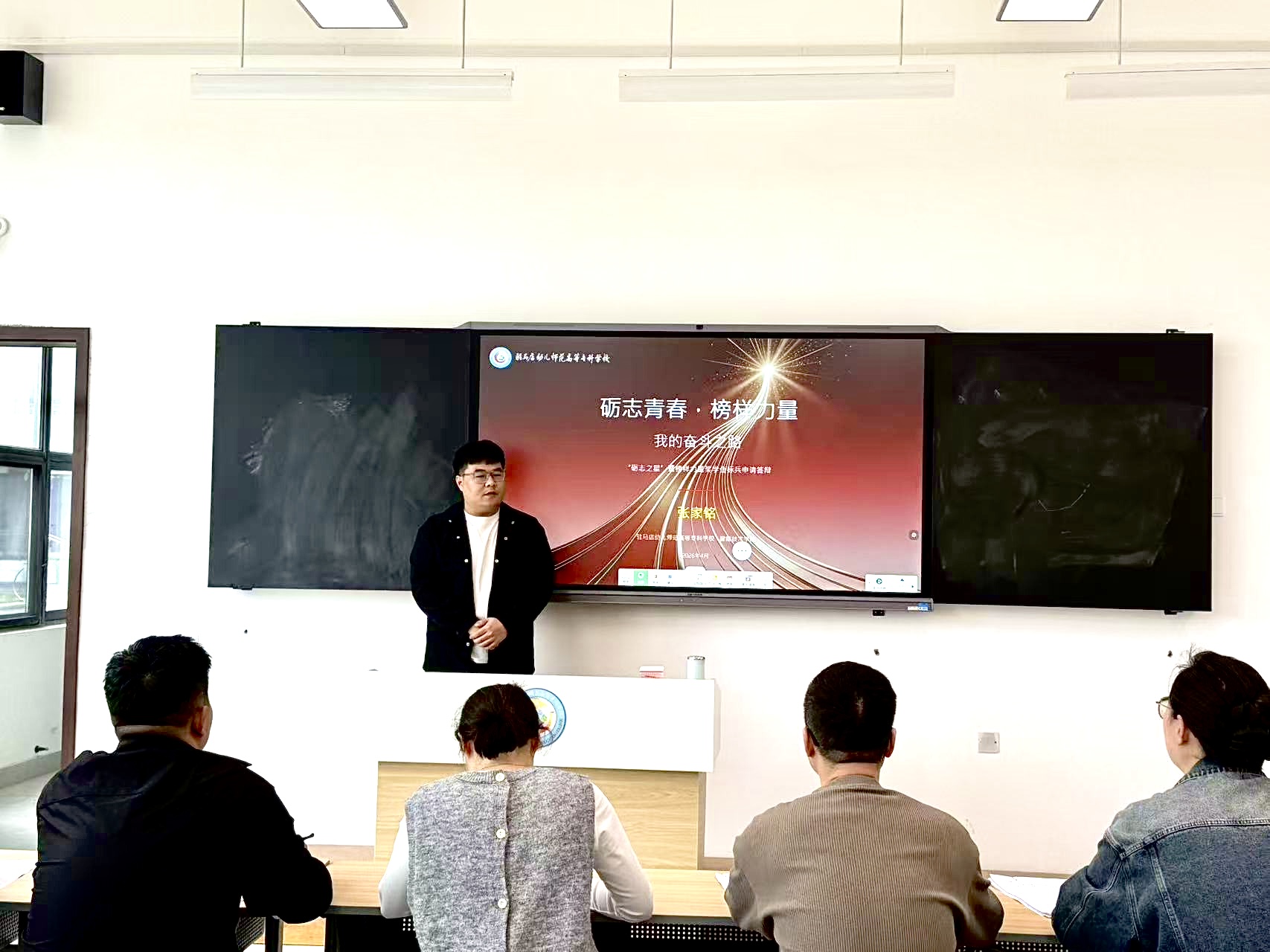 评审现场,参赛同学依次登台,结合自身经历,围绕学业成绩、励志成长、社会实践、志愿服务、创新创业等多个维度进行全面阐述与展示,充分展现了新时代大学生志存高远、自强不息、勤学善思、奋发向上的良好精神风貌。