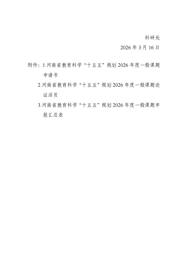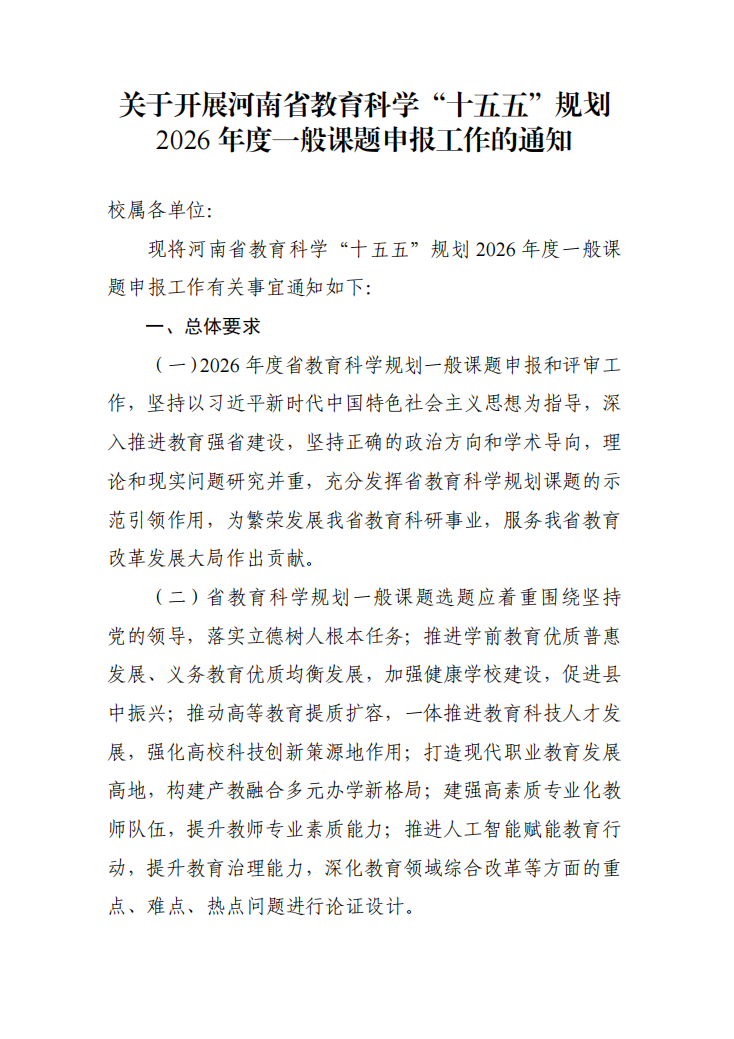 关于开展河南省教育科学“十五五”规划2026年度一般课题申报工作的通知