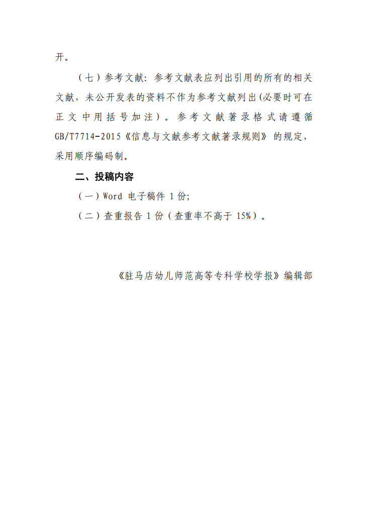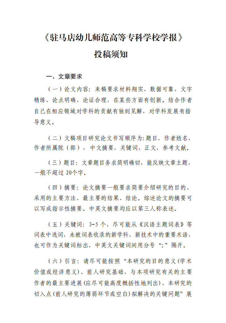 《驻马店幼儿师范高等专科学校学报》投稿需知
