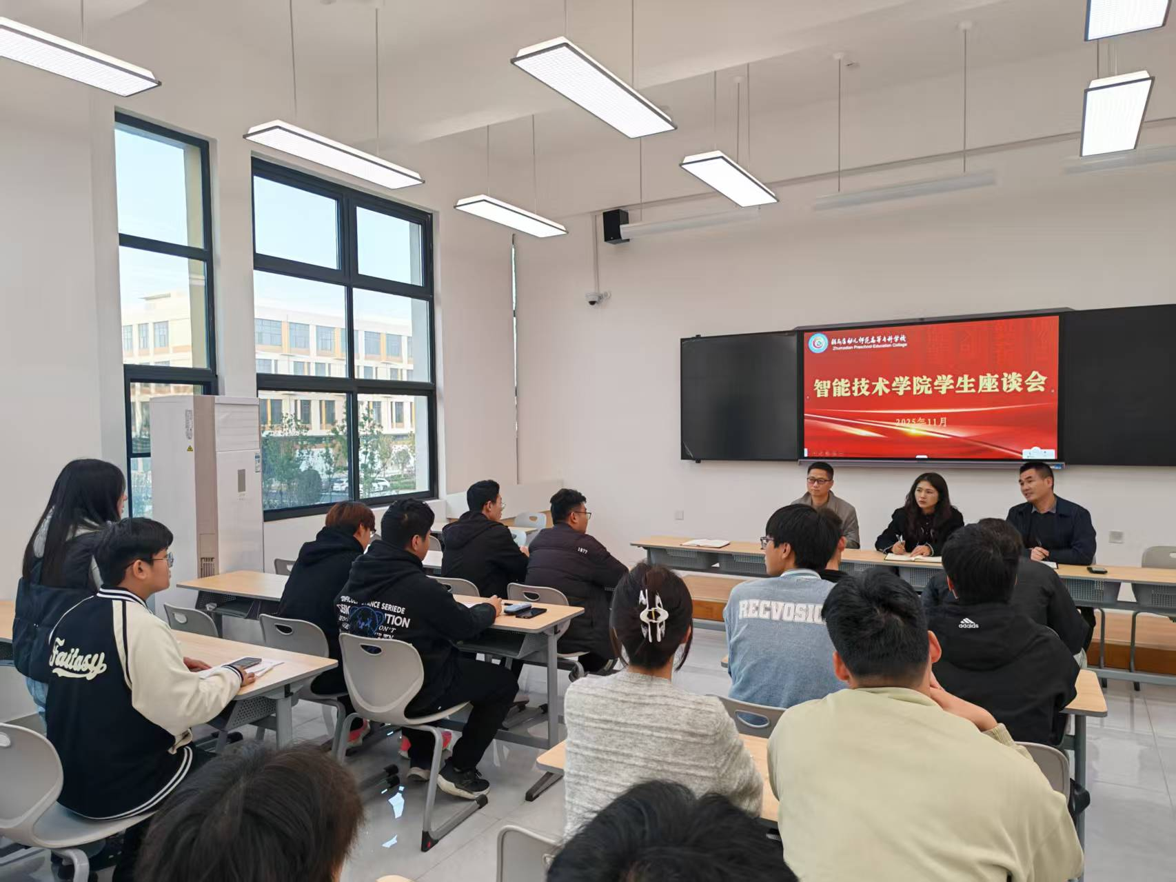 为进一步解决学生在学习与生活中的问题,营造更加优质、和谐的育人环境,智能技术学院于2025年11月4日召开2025级新生座谈会。本次座谈会由学院党总支副书记梅金星主持,党总支书记张静莉、副院长王新乔,以及学院学生工作科参加,与各个专业60余名学生代表进行面对面交流。